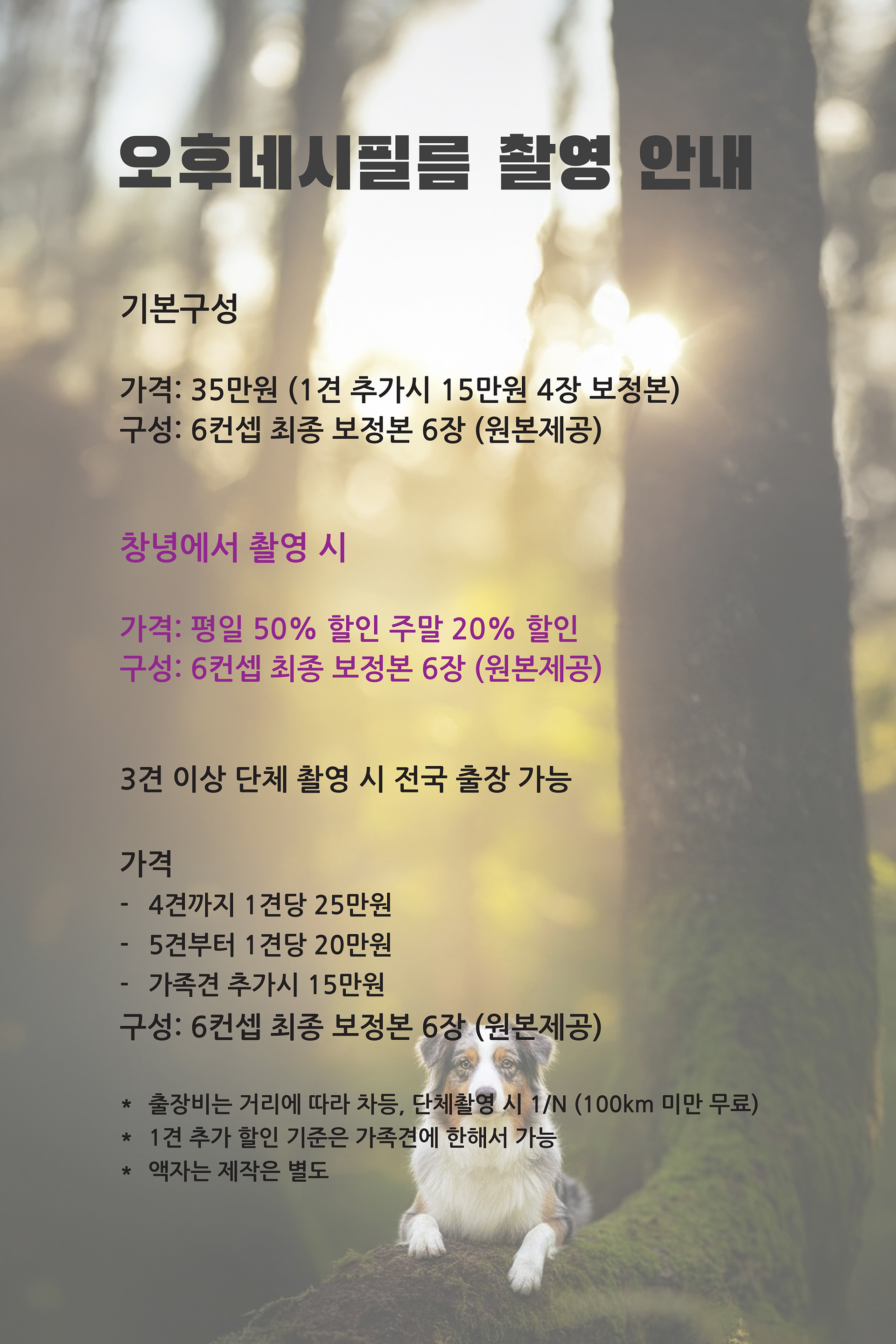 오후네시필름_ 애견야외 프로필 촬영 가격